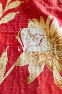• Layers of reclaimed sari cloth are hand-stitched with the kantha stitch, then pieced together and machine sewn for shape to a bottom layer of new, natural muslin