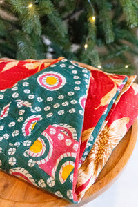 • Our kantha tree skirts are a gift of redemption to sit under your tree! Crafted from repurposed saris, they are hand-quilted by women in Bangladesh using a traditional, kantha stitch.