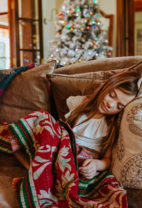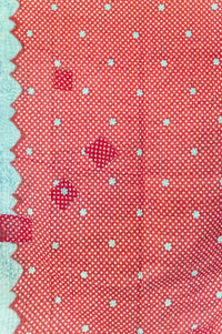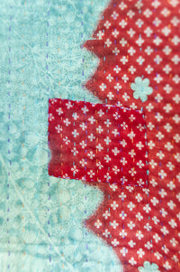 • The small version of our Christmas kantha throw, hand-stitched in festive red and green tones from six layers of reclaimed sari cloth.