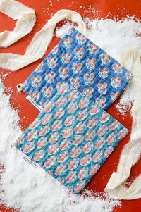 Our reversible kantha potholders bring beauty and meaning to even the smallest details of your home. Each set of two showcases four block-printed cotton designs, with every side uniquely patterned and hand-stitched using the traditional kantha technique. - Available in bright (teal, blue, pink & purple) or hand-dyed indigo block prints.