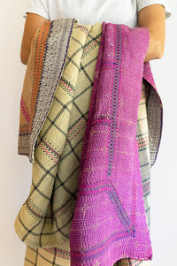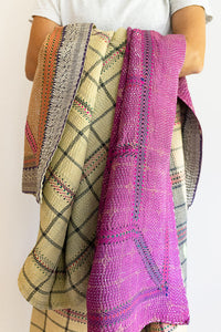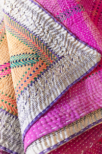 • Our intricate, Northern-style kantha blankets are a living piece of artwork, crafted from repurposed saris in a village in Bangladesh.
