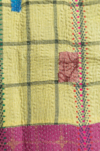 To extend the life of your kantha we recommend: limit full washing, and hang dry or tumble on low.