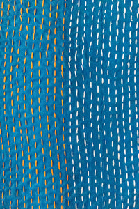 To extend the life of your kantha we recommend: limit full washing, and hang dry or tumble on low.