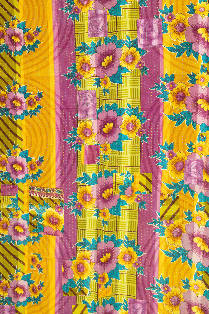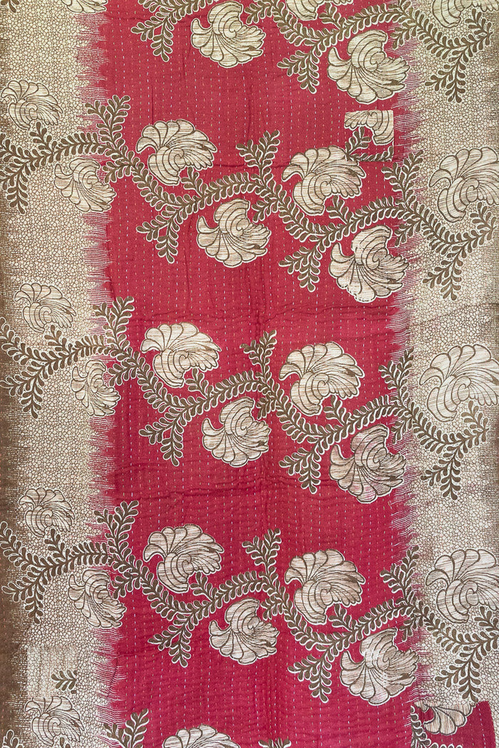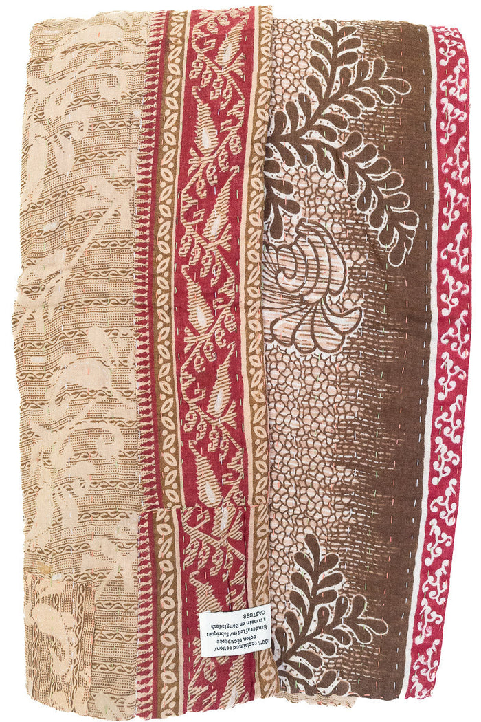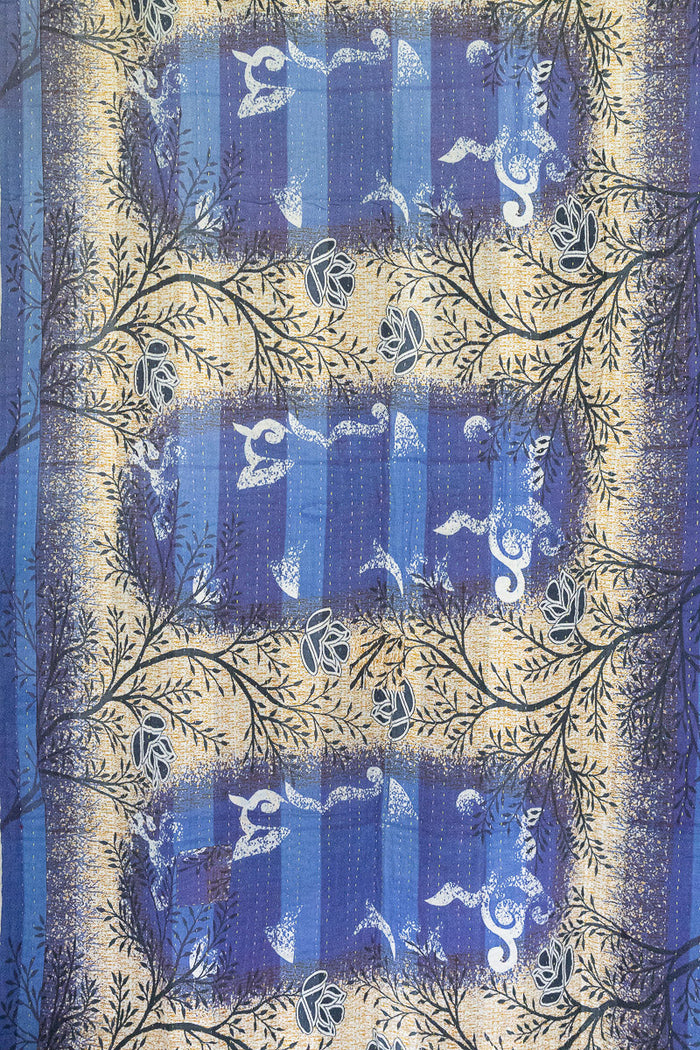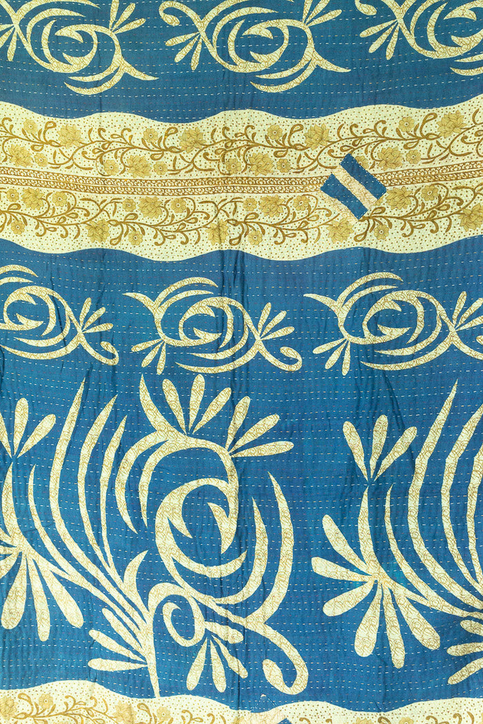 Masterpiece kantha quilts are made in the Northern style of the kantha tradition. The thread is thicker, the stitching denser, and you will see patterns & stitching embellishments that our classic blankets do not have. Our special kantha quilts range in prices and are true showpieces of art & kantha handicraft.