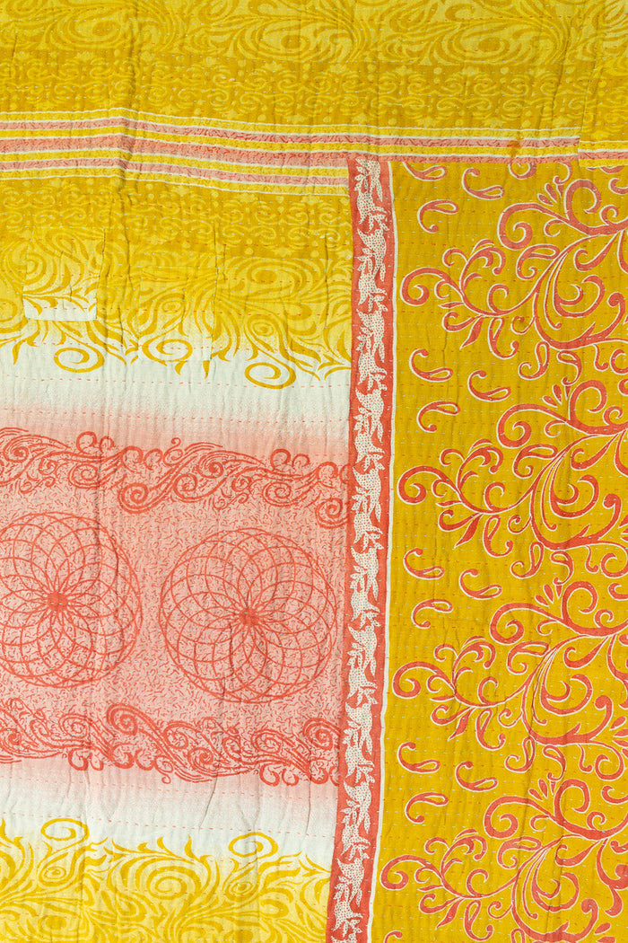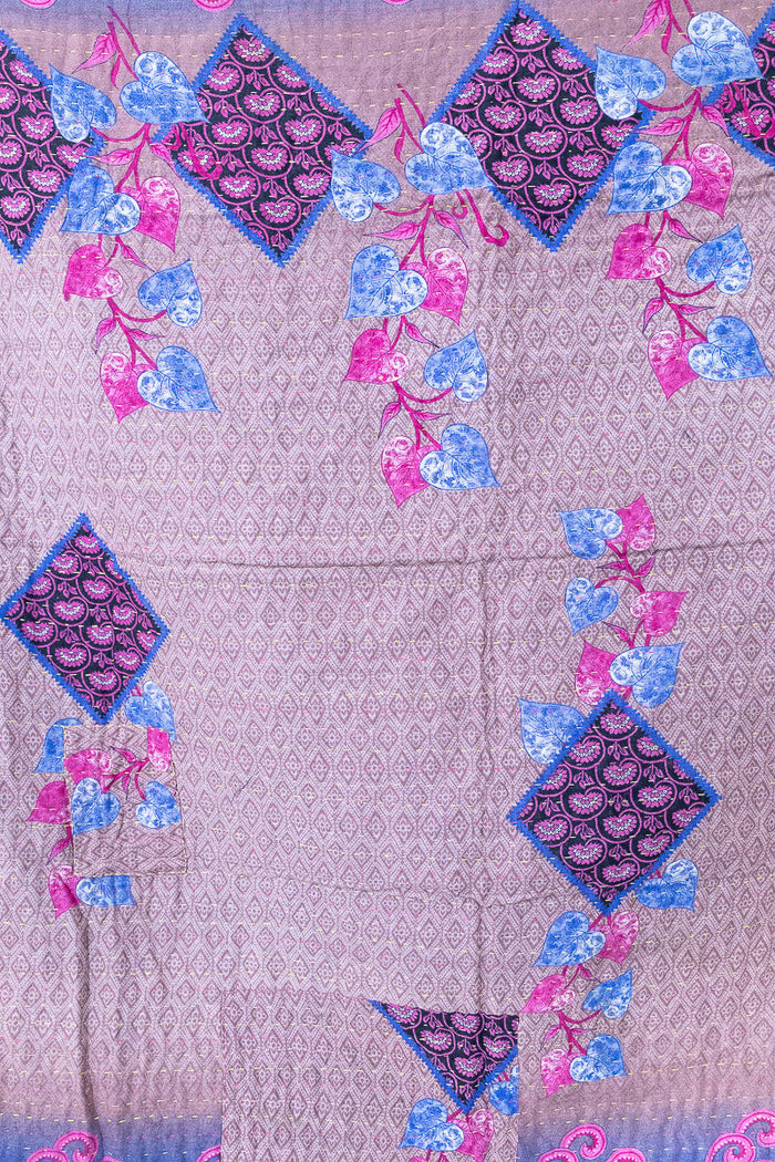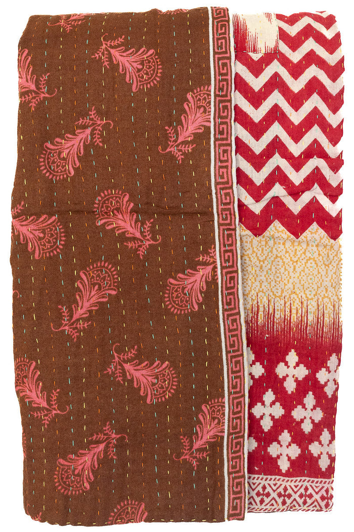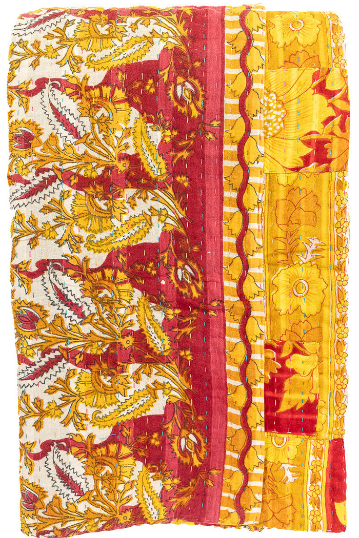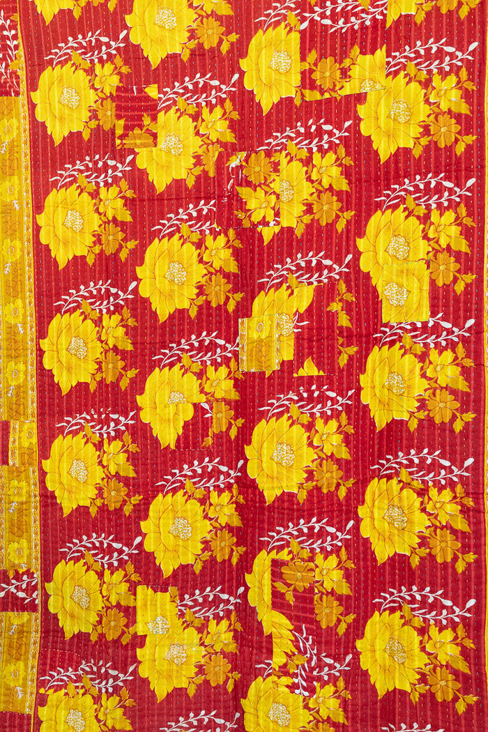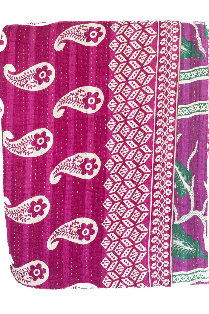 Masterpiece kantha quilts are made in the Northern style of the kantha tradition. The thread is thicker, the stitching denser, and you will see patterns & stitching embellishments that our classic blankets do not have. Our special kantha quilts range in prices and are true showpieces of art & kantha handicraft.