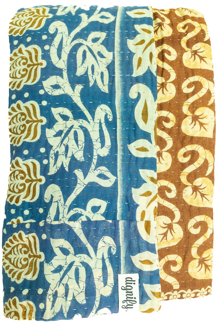 dignify sells kantha quilts in 3 different sizes and 2 different cloth materials.