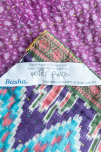 To extend the life of your kantha we recommend: limit full washing, use cold settings, and hang dry or tumble on low.