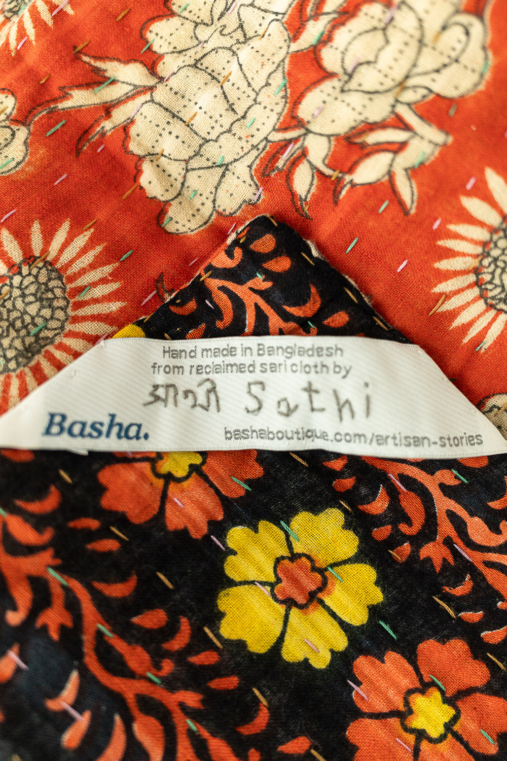 • Our bestselling, classic kantha throws are six layers of muslin sari cloth, hand-quilted together by women in Bangladesh using a traditional, kantha stitch.