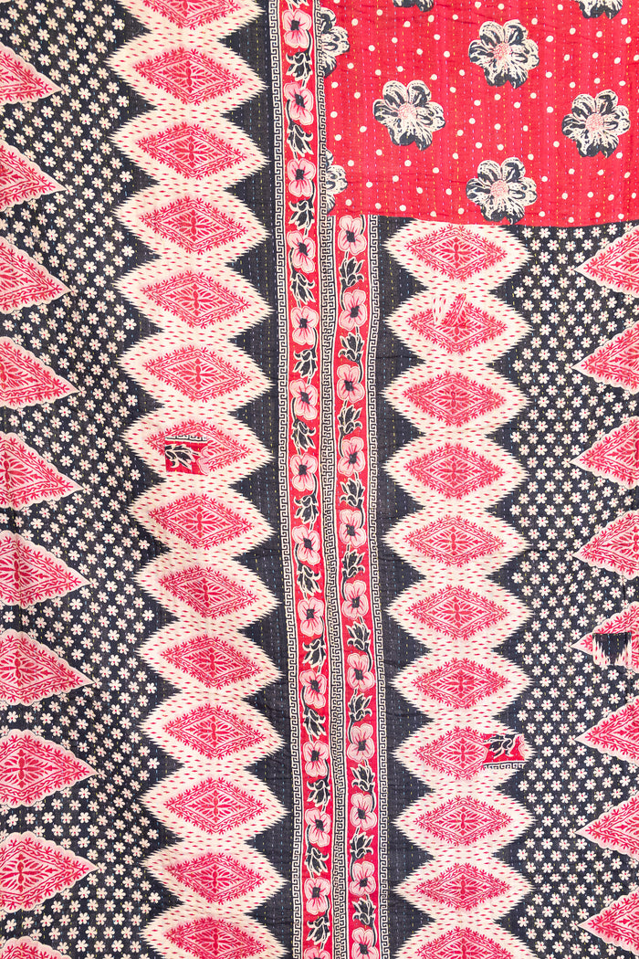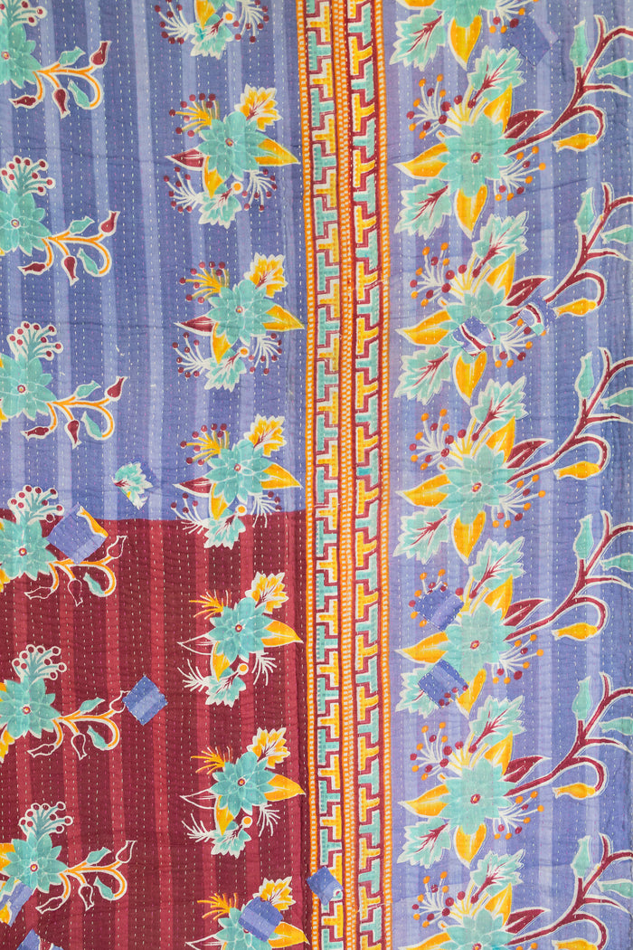 Masterpiece kantha quilts are made in the Northern style of the kantha tradition. The thread is thicker, the stitching denser, and you will see patterns & stitching embellishments that our classic blankets do not have. Our special kantha quilts range in prices and are true showpieces of art & kantha handicraft.