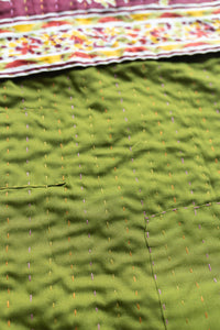 To extend the life of your kantha we recommend: limit full washing, use cold settings, and hang dry or tumble on low.