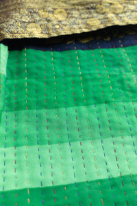 To extend the life of your kantha we recommend: limit full washing, use cold settings, and hang dry or tumble on low.