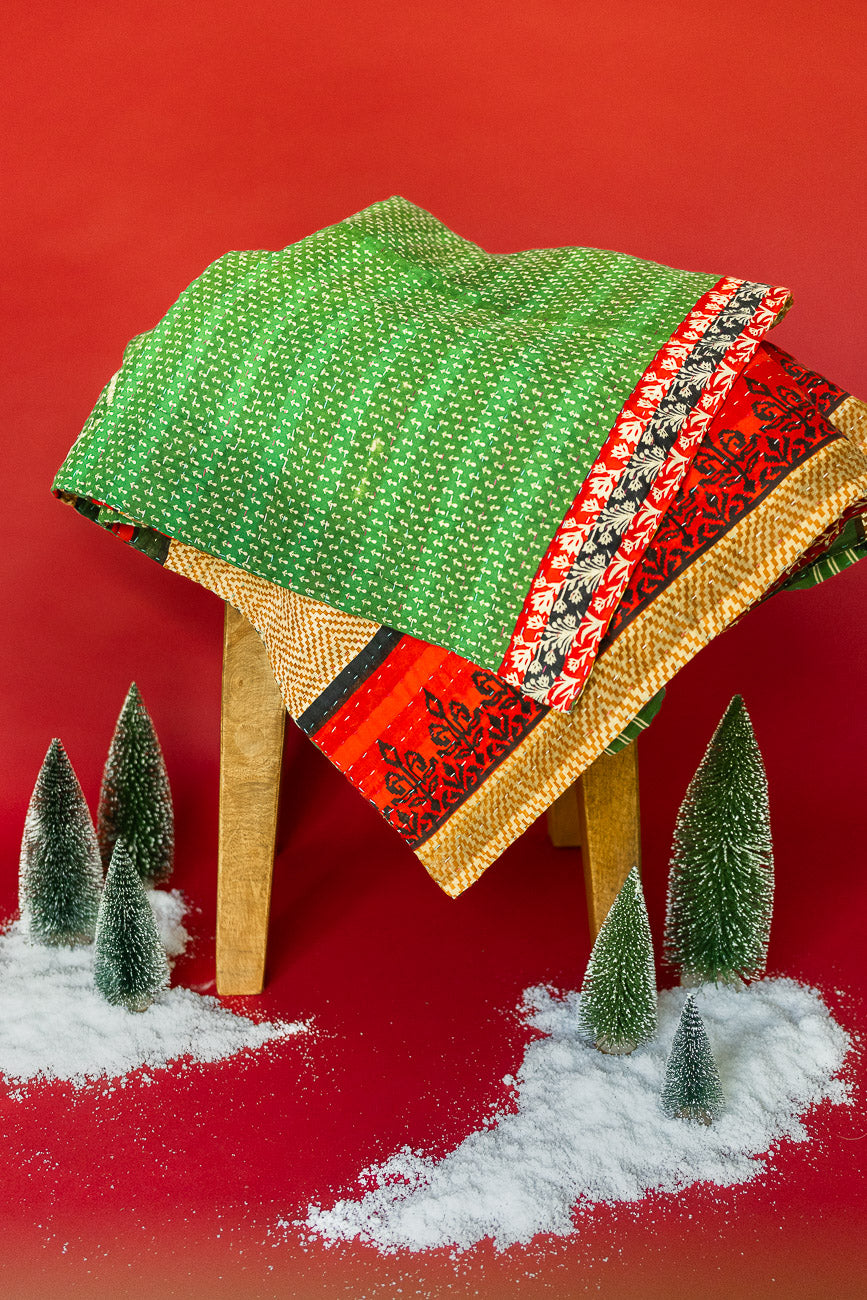• Our beloved large kantha throw, reimagined in festive holiday hues to bring warmth, color, and meaning to your Christmas season.
