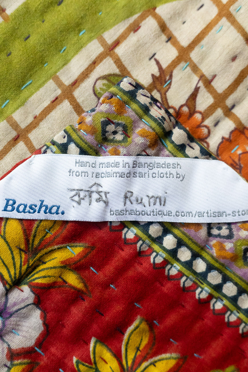 To extend the life of your kantha we recommend: limit full washing, use cold settings, and hang dry or tumble on low.