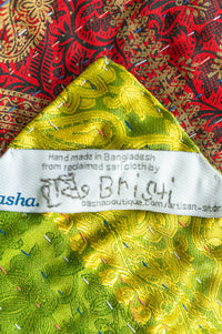 • Made from six layers of reclaimed silk and silk-blend sari cloth, each one is completely one of a kind.