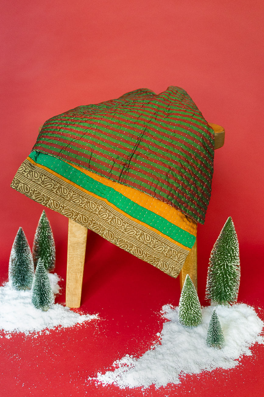• Our silk kantha throws bring soft shimmer and warmth to the season — an heirloom quilt, handcrafted in Bangladesh.