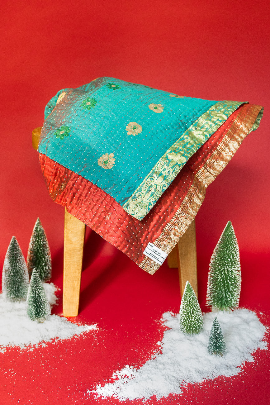 • Our silk kantha throws bring soft shimmer and warmth to the season — an heirloom quilt, handcrafted in Bangladesh.