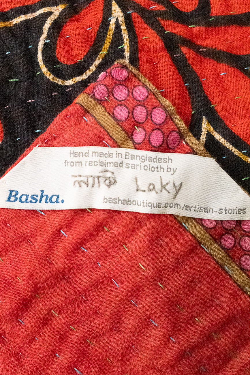 To extend the life of your kantha we recommend: limit full washing, use cold settings, and hang dry or tumble on low.