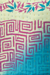To extend the life of your kantha we recommend: limit full washing, and hang dry or tumble on low.