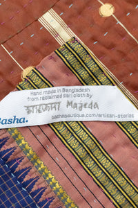 • Kantha silk blend throw blankets are six layers of vintage saris, hand-stitched together by women in Bangladesh using a traditional kantha stitch.
