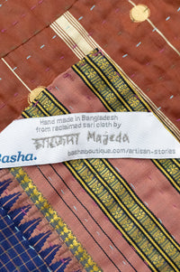 • Made of reclaimed, silk/unknown blend sari cloth
