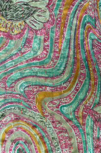 • Made of reclaimed, silk/unknown blend sari cloth