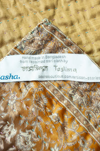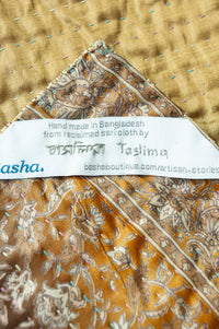 • Kantha silk blend throw blankets are six layers of vintage saris, hand-stitched together by women in Bangladesh using a traditional kantha stitch.