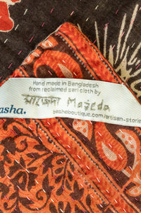 • Our bestselling, classic kantha throws are six layers of muslin sari cloth, hand-quilted together by women in Bangladesh using a traditional, kantha stitch.