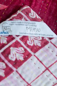 - The small version of our classic throws, kantha minis are six layers of muslin sari cloth, hand-quilted together by women in Bangladesh using a traditional, kantha stitch.