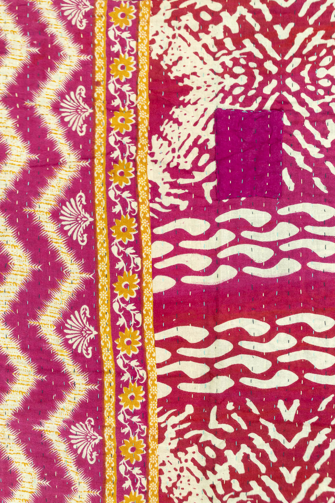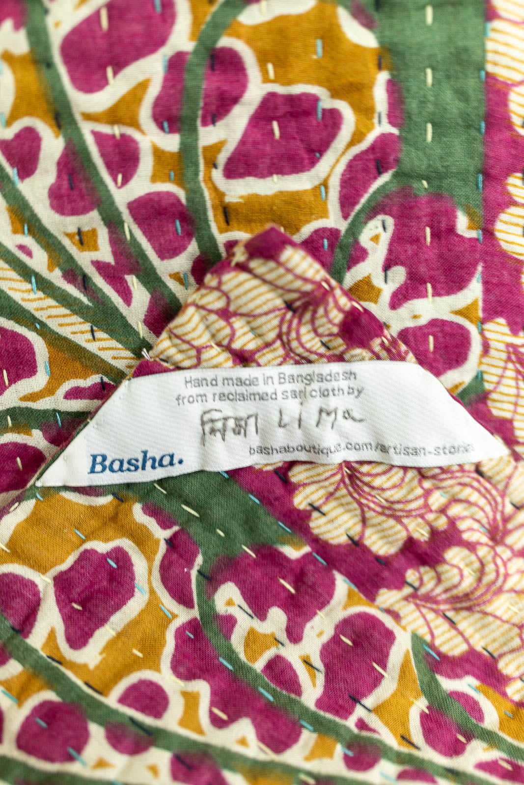 To extend the life of your kantha we recommend: limit full washing, use cold settings, and hang dry or tumble on low.