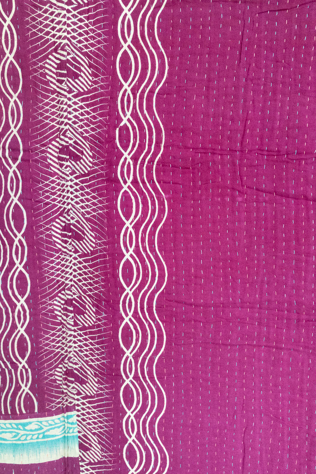 Cotton kantha quilts are 100% machine washable. You will not warp or damage the blanket by washing or drying in a machine.