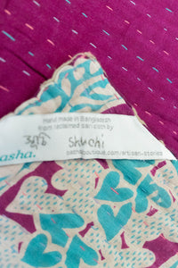 To extend the life of your kantha we recommend: limit full washing, use cold settings, and hang dry or tumble on low.