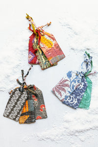 - Every set is entirely unique, created from a mix of reclaimed sari fabrics so no two sets are alike. Designed to be reused again and again, these tags add a beautiful, sustainable touch to any gift.