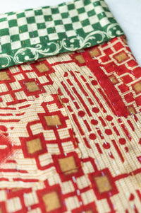 • Our vibrant, fair trade, customer-fave kantha stockings are crafted from layers of vintage saris, hand-quilted by women in Bangladesh using a Traditional (Red/Green), kantha stitch.