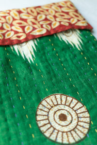• Our vibrant, fair trade, customer-fave kantha stockings are crafted from layers of vintage saris, hand-quilted by women in Bangladesh using a Traditional (Red/Green), kantha stitch.